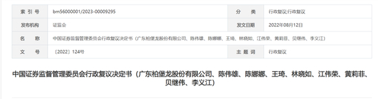 近日,证监会突然发布广东柏堡龙股份有限公司(以下简称柏堡龙)行政复议决定书,虽然落款日期显示为蛮久之前了,但证监会前两日才公开出来。