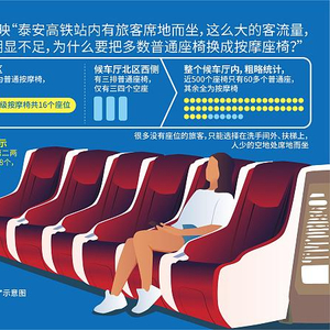 近日,有旅客反映,泰安高铁站内大量旅客席地而坐,原因系高铁站将普通座椅换成按摩座椅,导致普通座椅数量明显不足。8月17日,中国铁路官博发布公告,称铁路部门对泰安站按摩椅经营服务问题进行了通报批评。8月18日凌晨,泰安站连夜拆除按摩椅。
