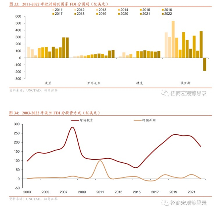 (五)欧洲新兴国家:除俄罗斯外疫后FDI流入速度加快,今明两年波兰和罗马尼亚FDI流入有望加快