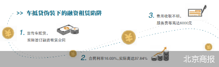 “车抵远程预审,0.83%-1.28%”“随借随还,当天放款”……看似车抵贷的营销宣传,实操过程中却把人带入融资租赁的“泥潭”。近日,有多位消费者向北京商报记者反馈,因自身资金需求寻求车抵贷,本想借此缓一时之急,但却被诱导签署了融资租赁合同,说好的车抵贷结果成了售后回租业务,伴随其中的还有各种好处费、中介费、GPS管理费和租金费,而扣款利息也远超宣传利率,甚至高出监管规定……