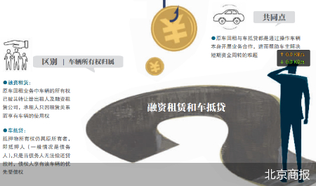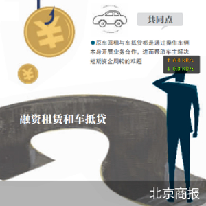 李亚告诉北京商报记者,车辆融资租赁后回租(原车回租)与车抵贷的共同点是:原车回租与车抵贷都是通过操作车辆本身开展业务合作,进而帮助车主解决短期资金周转的难题,对于车主来说,二者的服务效果是一致的。