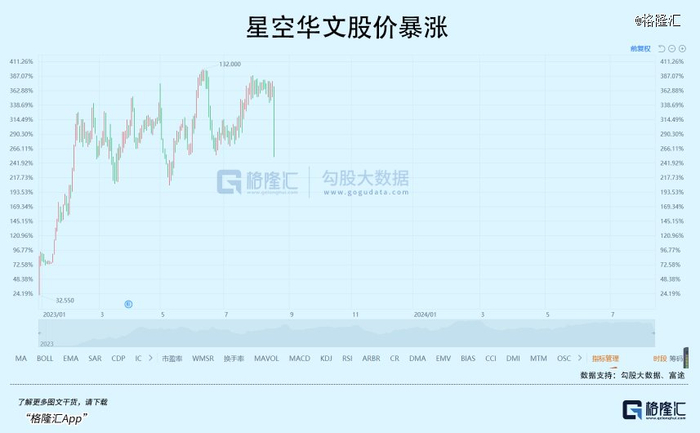 就在这样的环境下,星空华文居然半年大涨了4倍,今年6月的最高市值,高达530亿港元。即使今天大跌之后,市值依然有378亿。