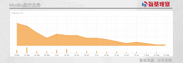 综合因素导致,MindBio上市后股价表现并不出色。截至8月20日收市,公司股价距离上市之日股价跌幅已达64%。