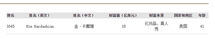 2022年,金姐又以18亿美元(约125亿元人民币)财富位列《2022年福布斯全球亿万富豪榜》,也难怪她被称为“地表最强网红”了!