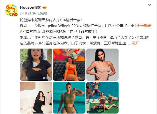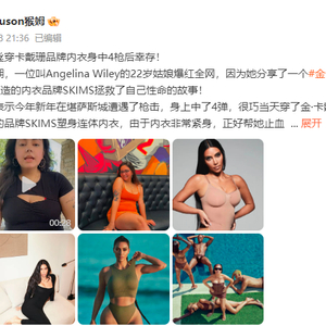 要知道,上次Skims出现在新闻里,还是一位美国女性博主分享“身中四枪却被Skims救命”的故事……据说,这款售价仅68美元的连体衣在视频火了以后爆红,数次紧急补货,让金姐又狠狠地赚了一笔。