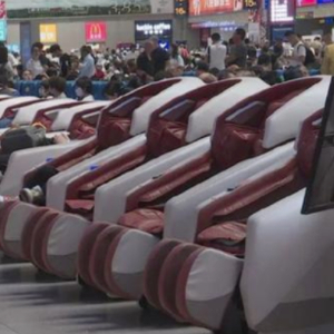 8月18日,记者来到福州站,一进候车大厅,最显眼的是右侧那一排排整齐划一的白色按摩椅,太空舱流线造型,显得十分高端。