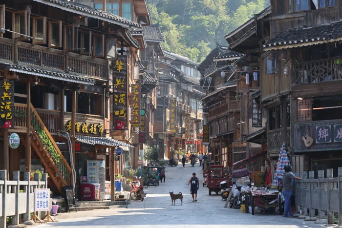 对比以前,她发现寨子现在最大不同是,变得更“拥挤”,更“寸土寸金”了。尤其是主街较繁华的那一段,步行约20分钟的路,不但是多了各色招牌,而且一些以前只有1层的店面还扩建出了2层,房子之间“使劲挨着”,民宿也比疫情期间多了许多,“有一些房子以前还是村民自住的,现在也改成民宿了”。