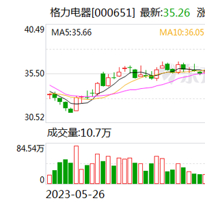 截至周五收盘,格力电器(SZ000651)股价35.48元,下跌1.5%,市值1998亿元。