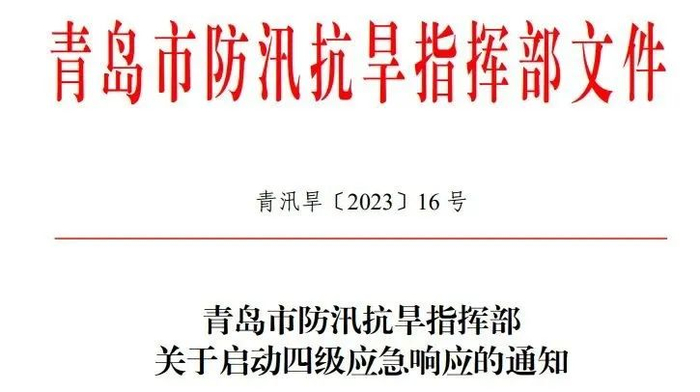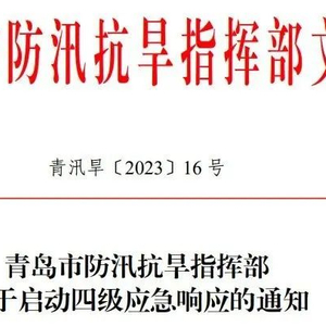 根据《青岛市防汛抗旱应急预案》有关规定,经综合会商研判,青岛市防汛抗旱指挥部自8月21日9时10分启动四级应急响应。