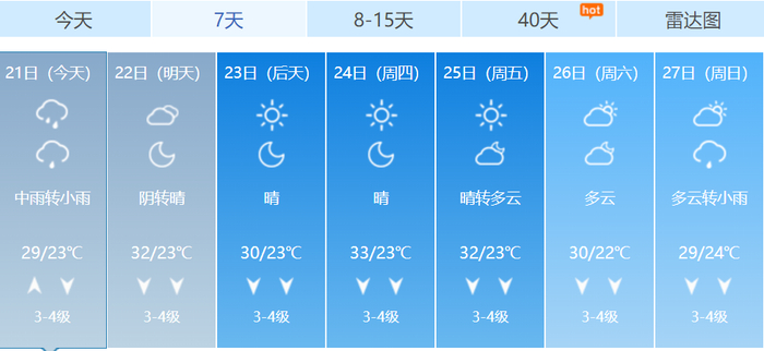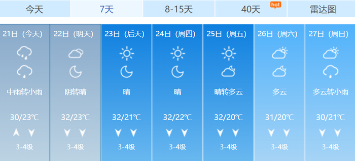 未来一周天气预报