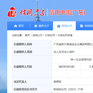 关于广东省新兴县食品企业集团有限公司的行政处罚信息 新城府处罚〔2023〕71号