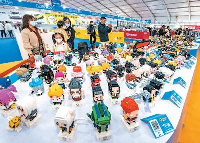 琳琅满目的积木玩具吸引着消费者。