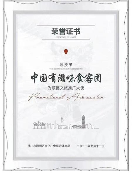 值得关注的是,基于“姐姐”组成的“食客”们在节目中的优异表现,让顺德精神、顺德味道、顺德气质,以一个更年轻、更有活力的形象,呈现在大家面前,顺德区文广旅体局授予“食客”们“顺德文旅推广大使”称号,赠予节目组一幅《顺峰游龙图》。