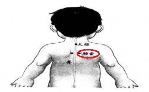位于第三胸椎棘突下,旁开1.5寸(小朋友大拇指指甲宽度约1寸)。具有止咳化痰,宣降肺气的作用。用食、中指指端揉50-100次。