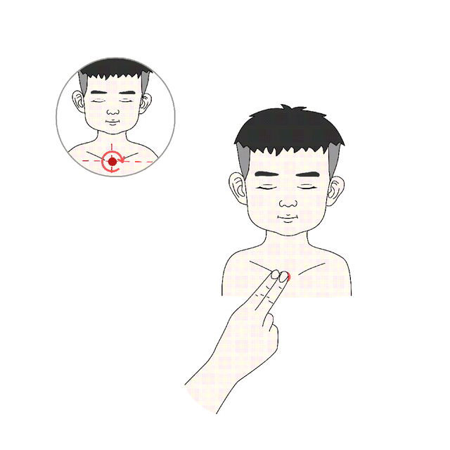 位于颈前区,前正中线上,胸骨上窝中央。具有化痰平喘、顺气止呕作用。用中指指端按揉天突穴50次。
