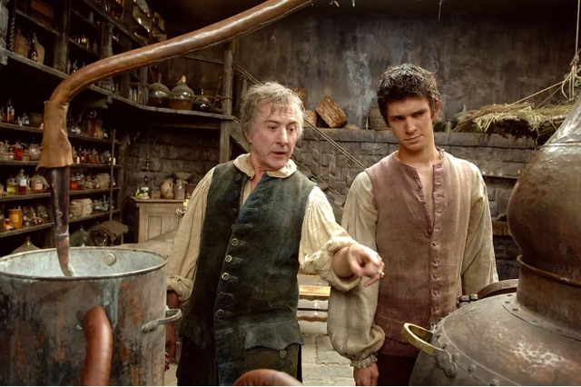 中世纪时期,修道院种植芳香植物并生产药用芳香水,即“奇迹之水”。尽管自古以来,人们已经开始运用蒸馏方式处理某些芳香植物,但直到8世纪,阿拉伯世界才首次使用蒸馏器。13世纪末,在意大利南部的萨莱诺才出现对发酵物进行蒸馏这一工艺,这使得生产乙醇(又称酒精)成为可能。有了蒸馏器,新型香水诞生,这种香水以酒精作为配方基础。在当时,最流行的产品是芳香植物的酒精溶液,其中芳香植物以迷迭香和百里香最为常用,因其抗菌性有助于增强酒精治愈微恙和抵御疾病的能力功效。1500年,耶罗尼米斯·布伦施威格的Liber de arte distillandi de simplicibus(一本有关蒸馏术的简明手册)出版。这本书详尽展示了蒸馏物的不同成分和蒸馏技术,并列出了305种动植物蒸馏物及其治疗特性。除唯一的个例迷迭香外,该书没有区分花水和精油,也未提及任何分离流程。尽管如此,该书依然展现了蒸馏器工艺为芳香产品制备带来的长足进步。