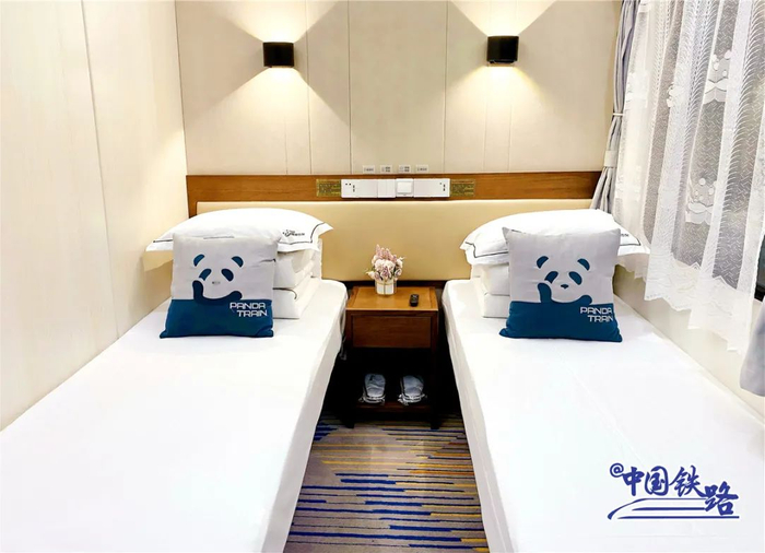 该趟“熊猫专列”为18辆编组,全列卧铺,包括标准四人间、高级四人间、豪华双人间等多种房型。