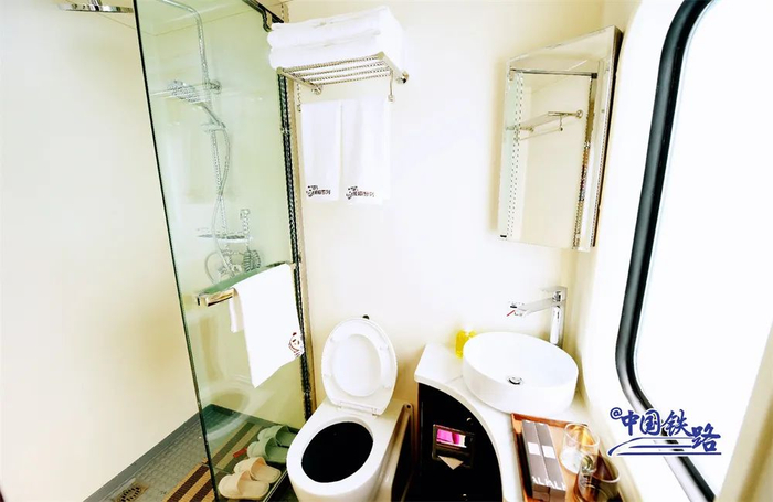 豪华双人间最受老年旅客青睐,这里配备独立卫浴间,更加私密,还有多功能收纳柜、紧急呼叫按钮等,满足旅客出行需要。