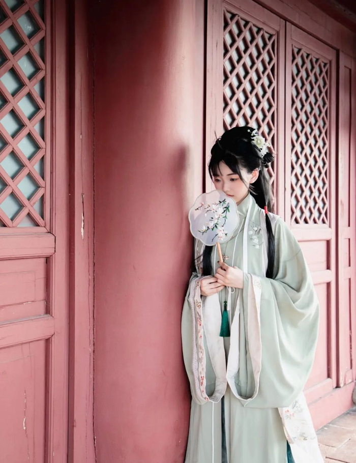 着一袭汉服,
