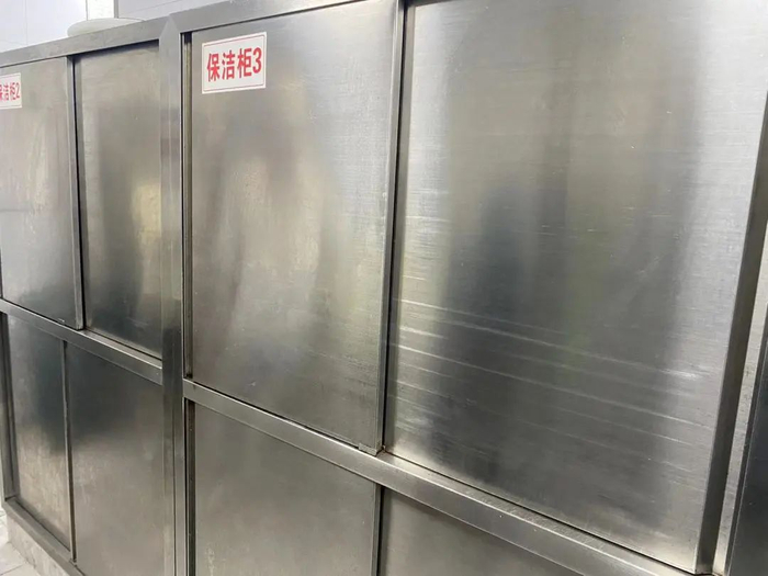 6、餐用具清洗消毒后存放密闭保洁柜。