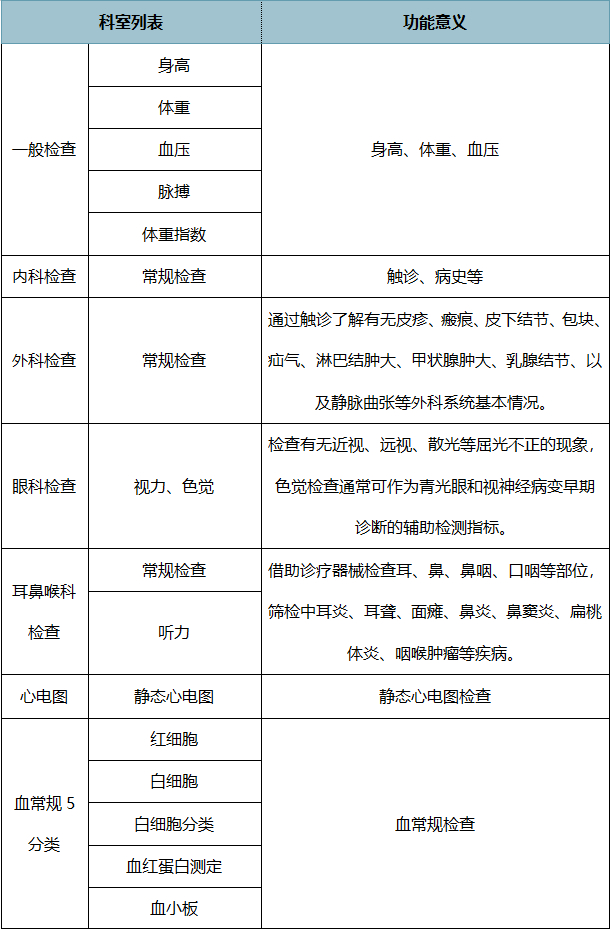 (1)如不能参加体检,请自行到二甲以上医院体检(体检项目见下表)。