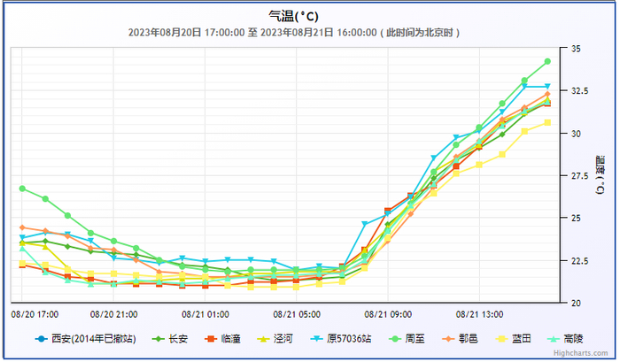 8月22日:晴间多云,城区气温21℃~33℃,其他区县最低气温18℃~21℃,最高气温31℃~33℃;