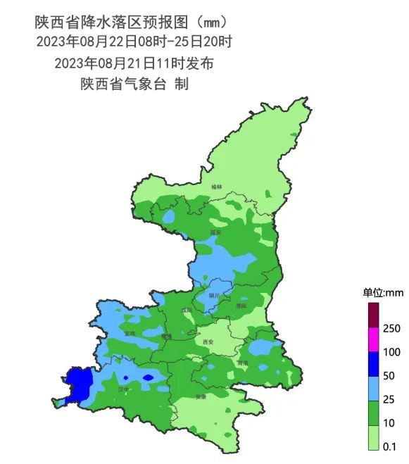 23日:全省大部有小到中阵雨。24日:陕北西部局地、北部局地有分散性小雨或阵雨,关中有小雨或阵雨,陕南有小到中阵雨。25日:陕北大部、关中和陕南有小到中雨,陕南南部局地有大到暴雨。