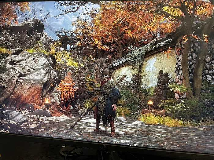 最直观的画面上,4种不同风格的场景充分展示了游戏的美术设计水平,这也是游戏第一眼最让人着迷的地方,是游戏的“脸面”。从游戏试玩的体验来看,游戏在画面的表现令人满意。借助虚幻5引擎和较高的电脑配置,繁茂的植被,复杂的环境细节,游戏呈现出逼近电影质感的画面效果。从目前开发的成果来看,《黑神话:悟空》画面已经达到极高的水准。