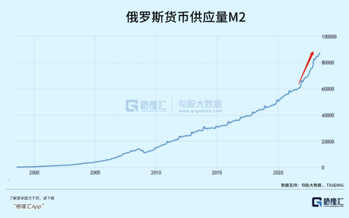 总之,因为去年底的这几个操作,2022年俄罗斯的流通货币增长率达到惊人的24.4%,比正常水平高出了一倍多。
