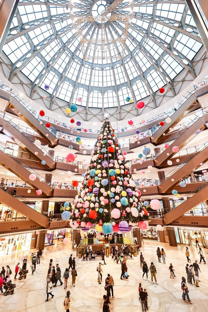 而今,踏上虹桥路段的徐家汇天桥连廊,不仅能获取徐家汇商圈“大圆环”的新取景角度,还能俯瞰港汇拆除“大台阶”后视野更为通透的艺术广场。圣诞节期间,商场门口竖起圣诞树装置时,天桥连廊也成为了视野绝佳的打卡点,吸引人们在商圈驻足。