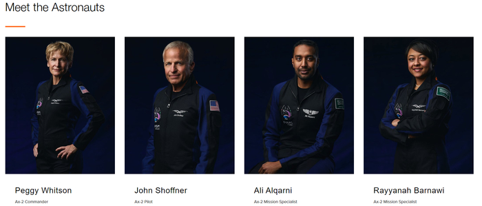 今年5月,Axiom又组织了第二次私人宇航任务“Ax-2”,首次将沙特女性上太空。