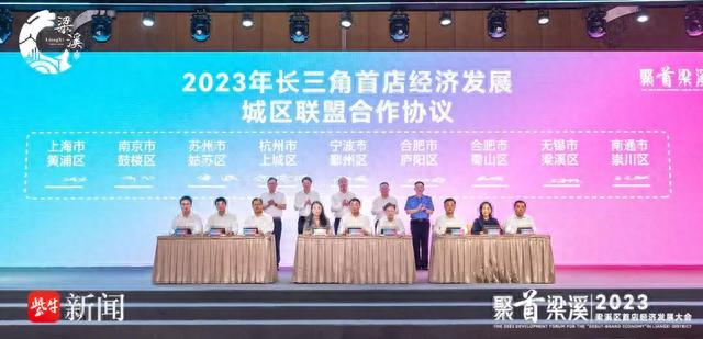 上海市黄浦区、南京市鼓楼区、苏州市姑苏区、杭州市上城区、宁波市鄞州区、合肥市庐阳区、合肥市蜀山区、无锡市梁溪区、南通市崇川区长三角九城区签约共建“2023年长三角首店经济发展城区联盟”,进一步推动长三角地区首店首发、特色品牌、餐饮文旅等商业领域的合作与交流。