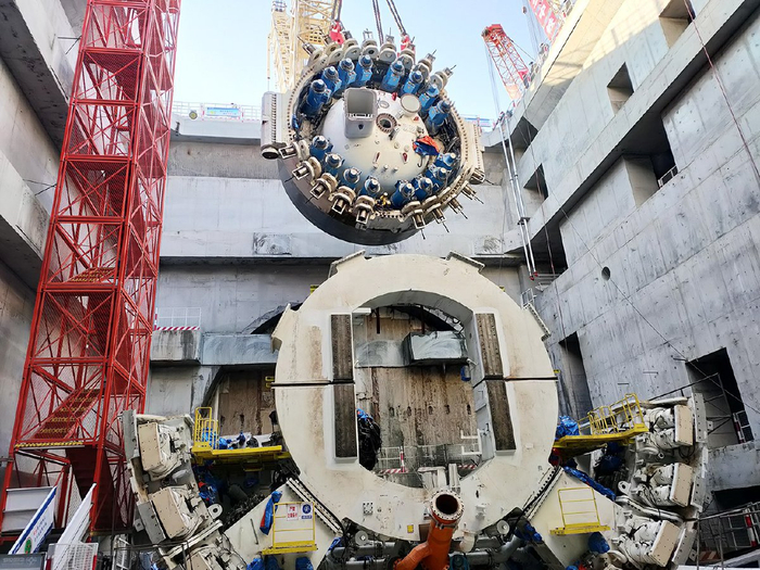 地面是塔吊林立的城市副中心站综合交通枢纽施工工地,地下是平稳掘进中的东六环盾构隧道。谁能想到,城市副中心在建的两大基础设施同步施工,在地下完成了一次“贴身穿越”。