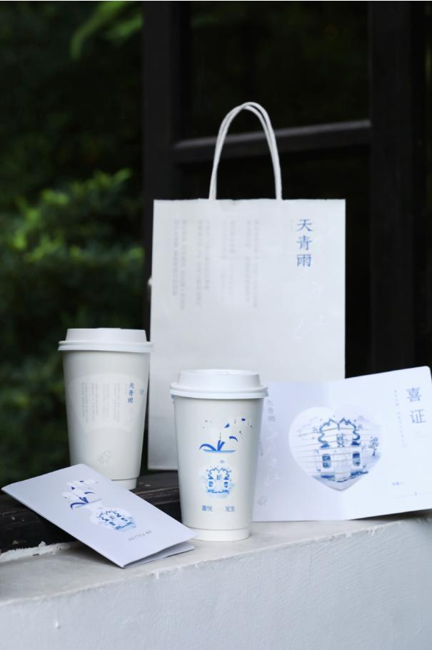随着天青雨新品在七夕这一传统喜悦节点与消费者的“相会”,喜茶同时致力于通过中式灵感设计和节日活动,带给消费者完整的品牌体验。在与方文山的特邀创作合作中,喜茶还以青花瓷底纹与工笔画风味为设计灵感,同步发布了一支新中式风格动画,以及由此延展的天青雨主题定制杯、纸袋的全新包材,和七夕限定香囊、七夕喜证周边。