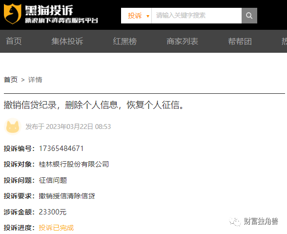 根据黑猫投诉平台显示,一名投诉者声称,“本人未用桂林银行进行贷款,但征信显示2022年12月27日桂林银行其他个人消费贷款授信,额度长期有效,可循环使用。截至2023年2月,信用额度23300元(人民币),余额为235,当前无逾期。此为虚假信息,本人并未授权和申请此贷款,目前严重影响了我的信用问题。”