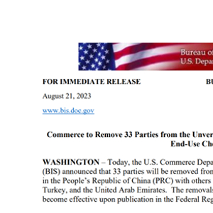 美国商务部更新出口管制名单:27个中国实体被剔除!