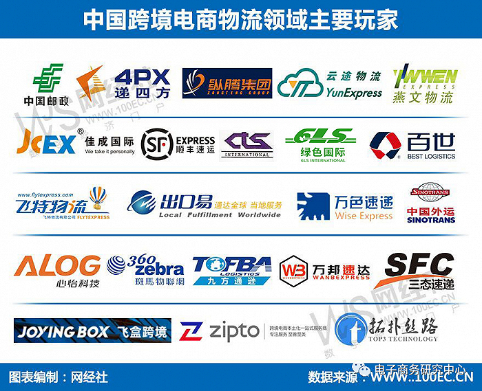 而在中国跨境电商物流领域,随着跨境电商行业的快速发展,也带动了跨境电商物流的蓬勃发展。据网经社企业库(COP.100EC.CN)显示,当前,在跨境电商物流产业链中,主要的玩家包括:中国邮政、递四方、纵腾集团、华贸物流、云途物流、燕文物流、佳成国际、顺丰速运、中国外运、百世集团、绿色物流集团、飞特物流、出口易、万色速递、万邦速达、心怡科技、斑马物联网、九方通逊、三态速递、飞盒跨境、至美通、拓扑丝路等。