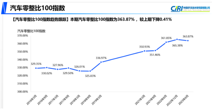 8月16日,中保研汽车技术研究院发布了《第16期汽车零整比体系数据》。报告显示,第16期汽车零整比100指数为363.87%,较15期降低0.41%,整体呈下降趋势,但主流豪华品牌零整比普遍较高。另外,“常用配件负担100指数”较上期上涨了0.92%,达到18.64,这也意味着消费者的汽车维修成本将进一步上升。