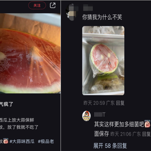 西瓜上放大蒜真能达到更好的保鲜效果吗?保鲜膜又该怎么合理使用呢?保鲜膜并非万物皆可包,各位一定要理智呀。