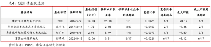 (3)业绩表现:根据基金经理任职以来QDII债基的业绩表现,我们选取任职以来区间收益率、夏普比率、最大回撤三项指标同类排名均在在前50%的QDII债基。