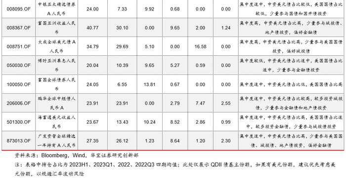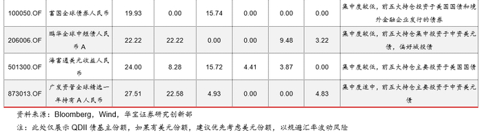 根据上述筛选规则,我们得到QDII债基优选池。下文针对QDII债基主份额进行讨论,如果有美元份额,当前时点建议优先考虑美元份额,以规避汇率波动风险。