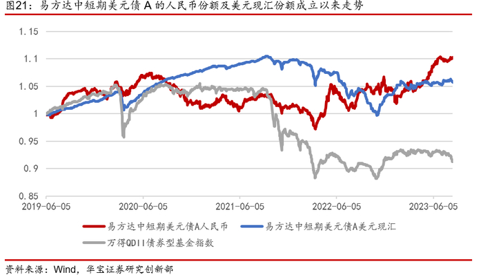汇率方面,锁汇成本较高,会对实施锁汇操作的人民币份额产品形成一定收益侵蚀。我们认为,未来人民币大概率步入升值区间,此时QDII债基的美元份额更具备吸引力。