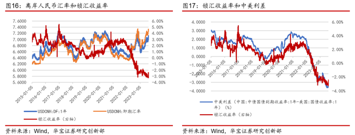 部分产品利用汇率期货、外汇远期进行锁汇,将有助于减少汇率波动的风险敞口。假设产品投资期限1年,资金出境后同时用远期合约进行锁汇,通过上述操作以对冲汇率风险,但因为即期汇率和远期汇率存在基差,锁汇操作可能获得额外的收益或亏损。截至2023年8月11日,离岸人民币即期汇率为7.2609,离岸美元兑人民币1年期远期汇率为7.0449,锁汇可能的亏损为-2.97%(7.0449/7.2609-1)。当前海外资产吸引力提高,投资者趋于即期以本币换美元,远期卖出美元,导致即期美元升值,远期美元贬值,导致锁汇成本较高,会对实施锁汇操作的人民币份额产品形成一些收益侵蚀。