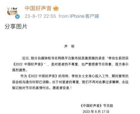 在录音里,李玟有过这样一句令人心痛不已的话:“28年做一个歌手,却在台上被人侮辱。”