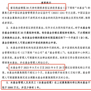 如今,睿远基金第四只公募即将发行,虽然公司及员工(含基金经理)在承诺在募集期内将认购睿远稳益增强30天持有债券基金不低于3000万元,并至少持有1年。但业内人士指出,受股债市场波动影响,基金发行市场并未全面回暖,投资者对购买新基金的投资决策也会更为审慎。