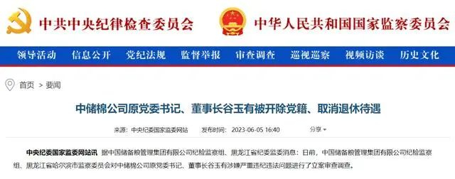 家不可一日无米,国不可一日无粮。储备粮对于国家安全意义重大,是各国保障粮食安全的重要举措。日前,中央纪委国家监委网站公开发文,对中储棉公司原党委书记、董事长谷玉有涉嫌严重违纪违法问题进行了披露。