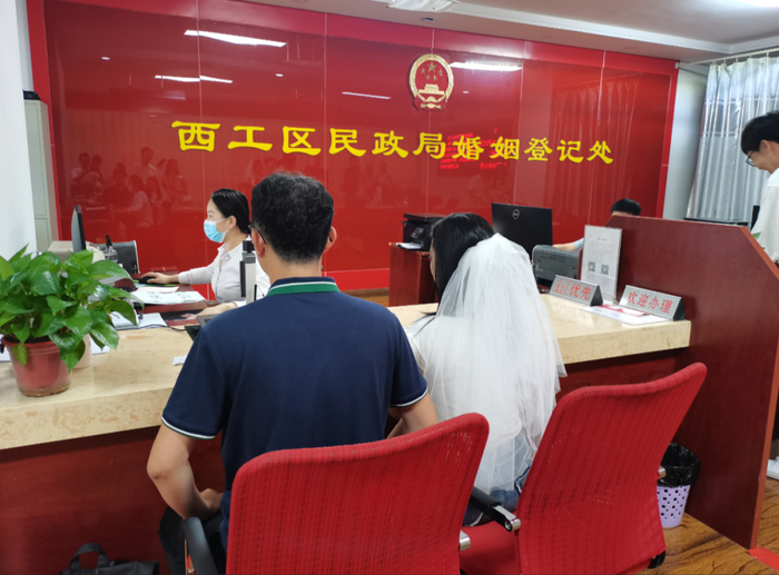 当日上午,山东潍坊姑娘栾艳颖和宜阳小伙白杨在西工区民政局婚姻登记处办理了结婚证。“我是婚姻登记‘跨省通办’政策的受益者,7月初,我打电话咨询得知,户口是外省也可以在洛阳办理结婚登记,考虑到西工区民政局婚姻登记处的综合条件比较好,我们选择来这里办理结婚登记。”栾艳颖说。