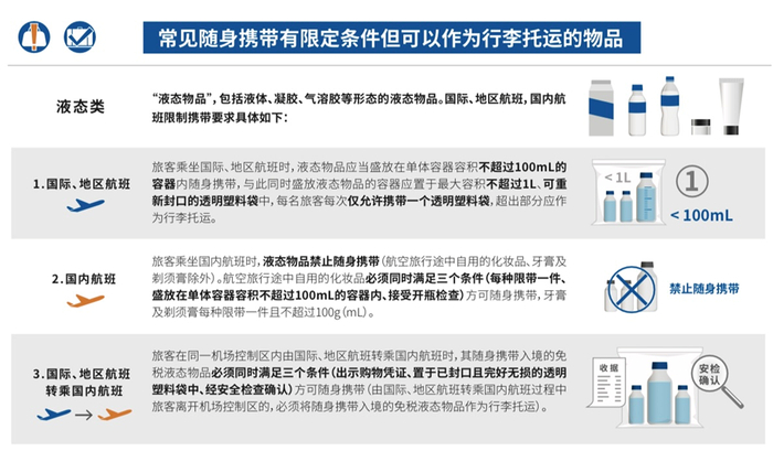 如液态物品不能超过100ml