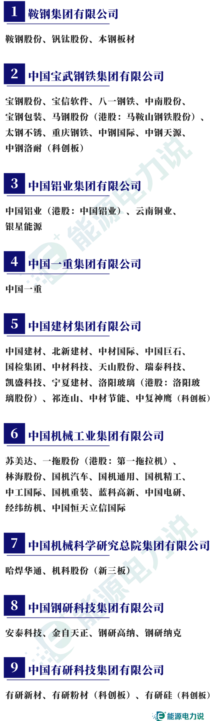 本文列出了国资委在2022年12月31发布的最新98家中央企业名录,并分行业查看相关央企及其附属上市公司情况,数据来源国资委官网、能源电力说。