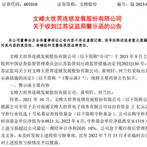8月21日晚间,文峰股份发布公告称,公司收到江苏监管局发来的行政监管措施决定书。